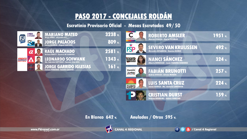 Comicios de suma relevancia también fue el de los candidatos a las bancas legislativas roldanenses, donde tres agrupaciones presentaron internas y donde los sufragios nulos, en blanco y etcétera duplicaron los guarismos de las PASO a intendente: 1239 en total, en 49 de las 50 mesas escrutadas.