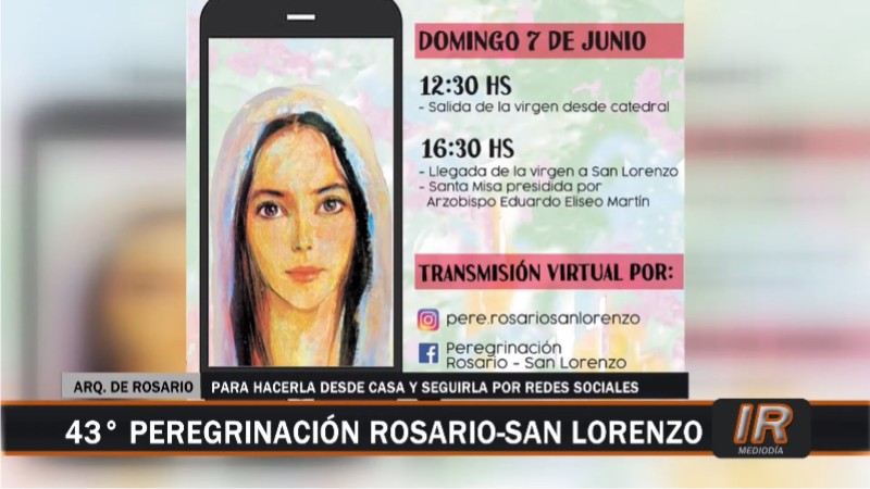 Este domingo 7 de junio tendrá lugar la tradicional Peregrinación que une las ciudades de Rosario y San Lorenzo, organizada por la Arquidiócesis de Rosario pero que en esta edición n° 43 se alinea con las disposiciones de la cuarentena para llevarse a cabo de manera virtual.