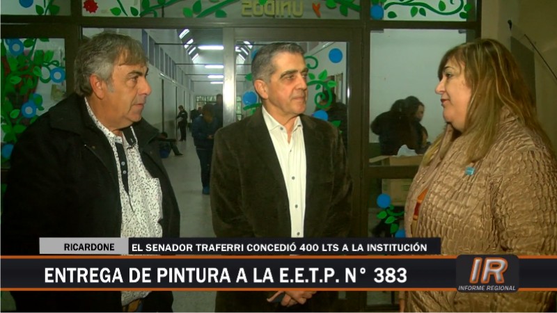 La Escuela de Educación Técnica Profesional n° 383 “Dr. Julio I. Maiztegui” de la localidad de Ricardone tiene buenas nuevas ya que mediante una gestión efectuada por la Comuna ha logrado obtener una importante cantidad de pintura para embellecer el establecimiento.