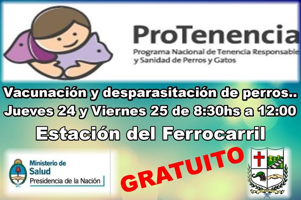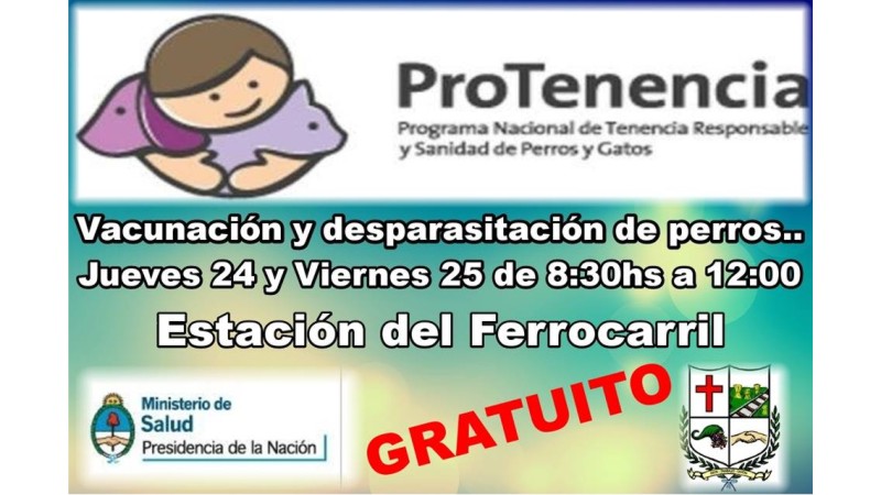 En una doble jornada que se realizará en la ex estación del ferrocarril de San Jerónimo Sud, se estará llevando a cabo entre hoy jueves 24 y mañana viernes 25 de septiembre una tarea de vacunación y desparasitación de perros.