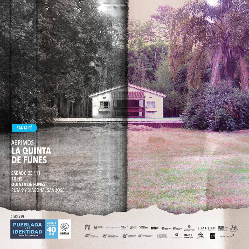 La tristemente célebre Quinta de Funes será escenario de un evento muy profundo ya que por primera vez se abrirán las puertas para una labor que en la ciudad comenzó a desarrollarse a fines del mes pasado con alumnos de séptimo grado y de quinto año de varias escuelas, donde el objetivo fue la generación de la recuperación de la memoria y la transmisión al futuro del trabajo incesante de las Abuelas de Plaza de Mayo