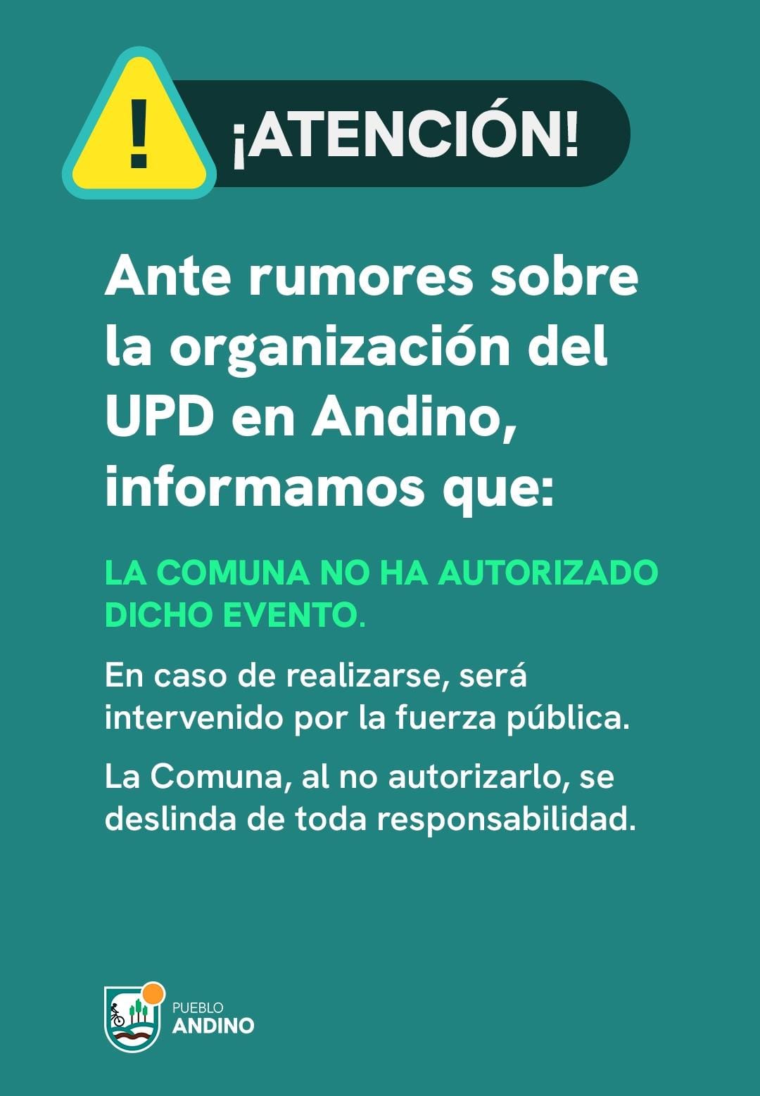 La Comuna de Pueblo Andino emitió un comunicado oficial para desmentir la supuesta autorización de una fiesta por el UPD (Último Primer Día) que comenzó a circular entre estudiantes de la región.
