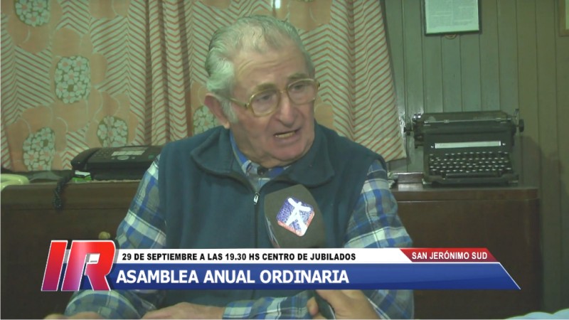 El próximo jueves 29 de septiembre, a partir de las 19:30 horas, es la fecha para la cual está prevista la realización de la Asamblea General Ordinaria por parte del Centro de Jubilados y Pensionados de San Jerónimo, de acuerdo a lo indicado por su titular, el sr. Mario Tapia.