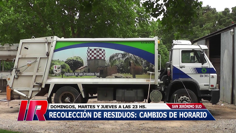 El pasado 3 de diciembre se puso en marcha el nuevo horario para la recolección de los residuos sólidos domiciliarios en San Jerónimo Sud, siendo ahora los días dispuestos los domingos, martes y jueves a partir de las 23 horas y continuando en su génesis en la calle Güemes.