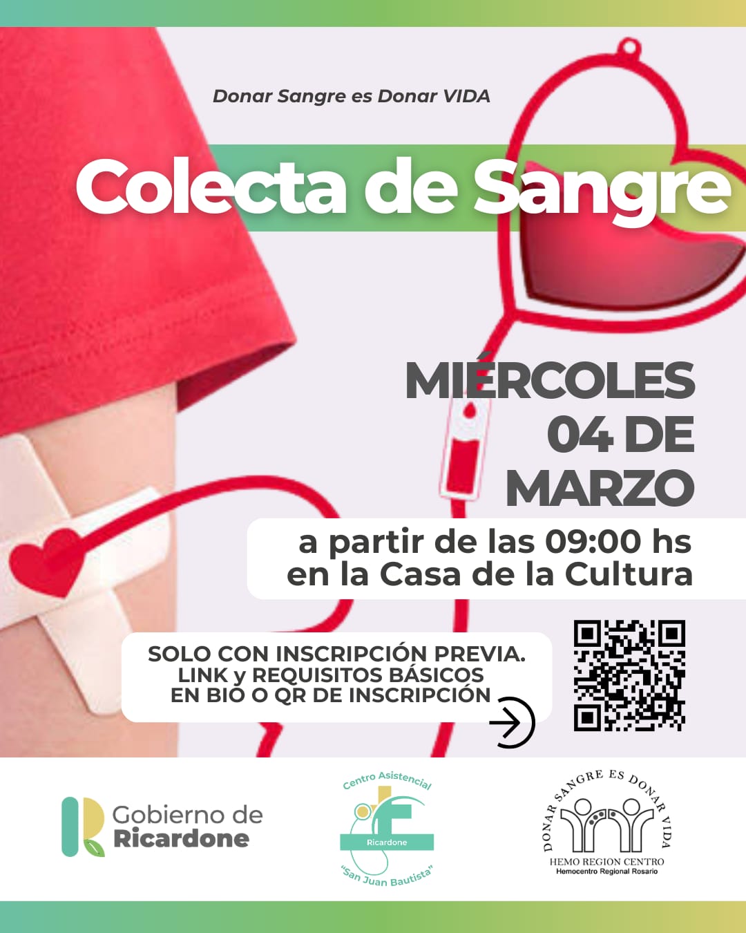 El próximo miércoles 4 de marzo se llevará a cabo una nueva jornada de la campaña de Donación Voluntaria de Sangre y Registro de Médula Ósea en la localidad de Ricardone, la cual en esta oportunidad tendrá lugar en las instalaciones de la Casa de la Cultura, bulevar Néstor de Iriondo 646.