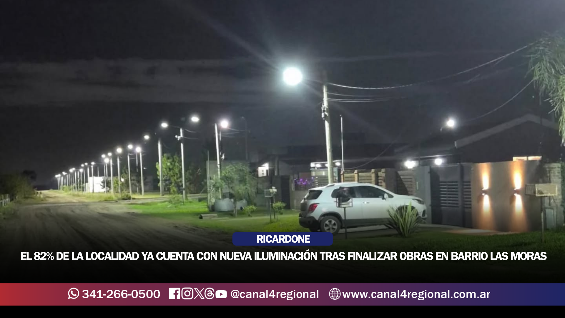La localidad de Ricardone continúa transformando su fisonomía nocturna mediante el plan de modernización del alumbrado público. Según informaron las autoridades comunales, esta semana concluyeron los trabajos en el Barrio Las Moras, específicamente sobre el Bv. Néstor de Iriondo, en el tramo comprendido entre las alturas del 1100 al 1600.
