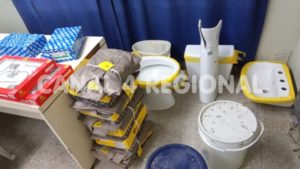 Aprehendidos los sujetos se determinó que los mismos, de 25 y 23 años de edad y oriundos de Rosario, guardaban relación con el delito denunciado, lográndose en la requisa del vehículo el secuestro de numerosos elementos: dos cajas de grifería, un inodoro con mochila, un bidet, una pileta de baño, duchas, envases con masilla y con pintura látex y varias cajas de ropa de trabajo. Se procedió al secuestro de lo citado y al traslado de ambos sujetos a sede policial, quedando a disposición de la Fiscalía de Flagrancia en turno.