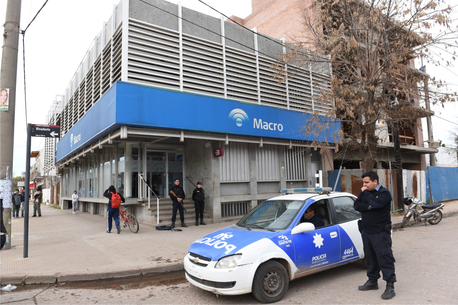 El suceso en el banco de San Martín y Rivadavia de Roldán fue el miércoles. La banda era formada por entre cuatro y seis miembros que usaron al menos dos autos y una moto. Portaban una ametralladora, tres armas de fuego y uniformes de la empresa de correo privado OCA. Pero todo se les puso en contra. Primero una empleada policial accionó una alarma sonora, la de los bomberos, y todos enloquecieron, porque el banco está a 70 metros de la comisaría y los ladrones apuraron la fuga sin llegar al grueso de la plata, al banco no le robaron nada.