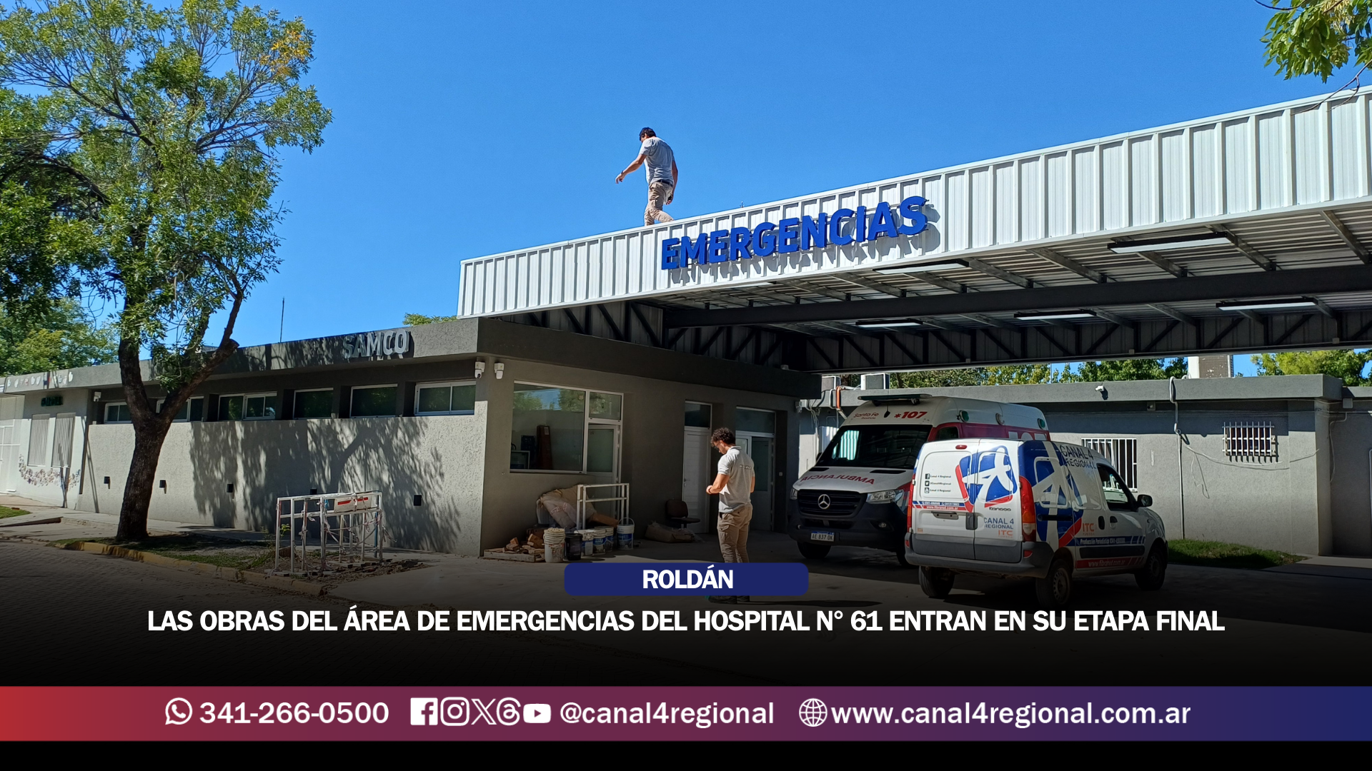 La transformación del Hospital N° 61 «Dr. Manuel Escalante de Larrechea» de la ciudad de Roldán está cada vez más cerca de completarse. Integrantes de la Cooperadora recorrieron las instalaciones junto a Canal 4 Regional para mostrar los avances del flamante sector de emergencias, una obra que cambiará radicalmente la dinámica de atención en la localidad.