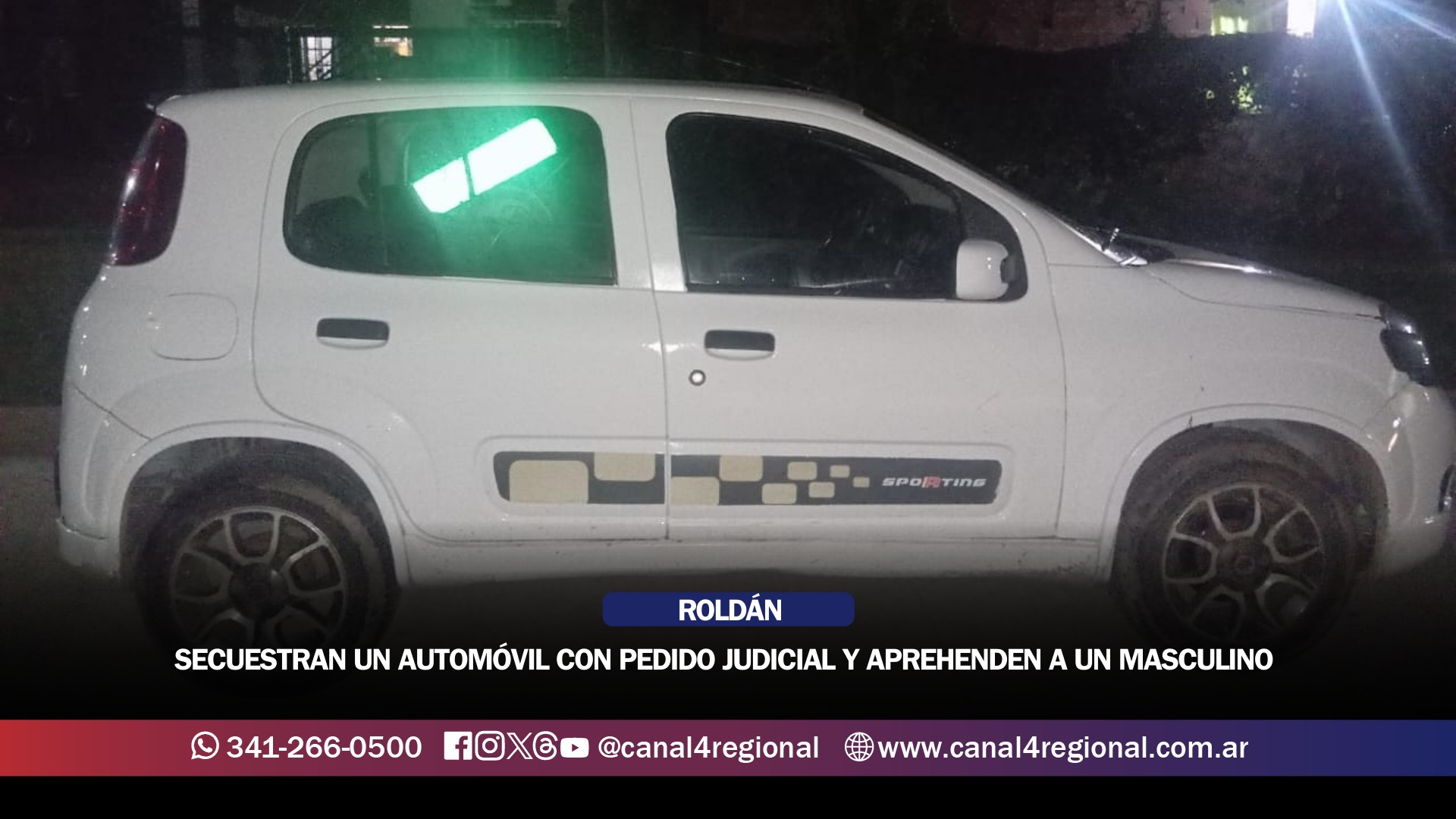 En la madrugada de este martes, personal del Comando Radioeléctrico de Roldán, dependiente de la Unidad Regional XVII, llevó adelante un procedimiento que culminó con el secuestro de un vehículo con requerimiento judicial y la aprehensión de un hombre de 46 años en la ciudad de Roldán.
