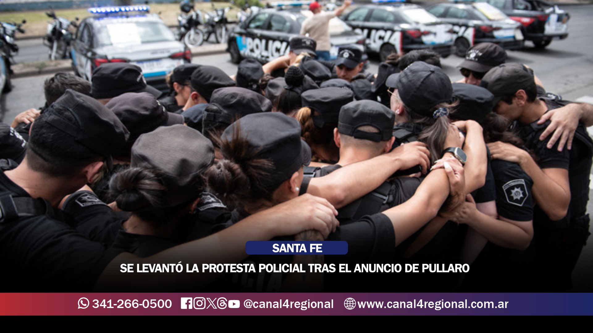 La protesta que un sector de la Policía de Santa Fe mantenía frente a la Jefatura de la Unidad Regional II, en Ovidio Lagos al 5200 de Rosario, quedó sin efecto este miércoles por la tarde, luego de que el gobernador Maximiliano Pullaro anunciara un nuevo esquema salarial para las fuerzas de seguridad.