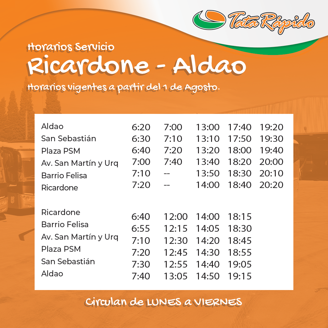La firma Tata Rápido ha sustituido a Serodino SRL en el transporte de pasajeros en el tramo Ricardone – San Lorenzo – PGSM – Aldao.