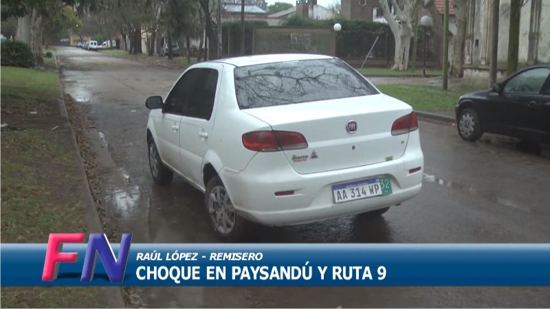 En el mismo amanecer de esta lluviosa jornada de jueves se produjo un accidente de tránsito en la intersección de la ex Ruta Nacional 9 y la calle Paysandú, en la ciudad de Funes, el cual tuvo como protagonista a un automóvil Fiat Siena dominio AA314WP que cumplía las funciones de remís y una motocicleta