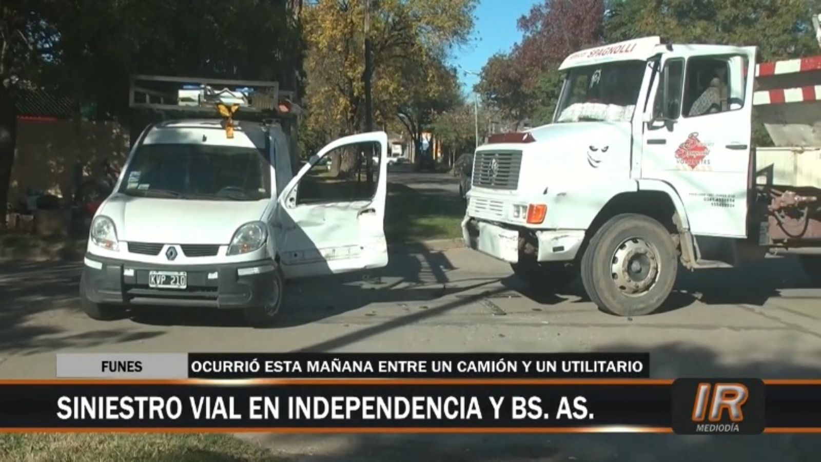 El accidente fue protagonizado por un utilitario Renault Kangoo dominio KVP210 de una empresa de telefonía fija y móvil y un camión Mercedes Benz transportador de volquetes perteneciente a una firma local.