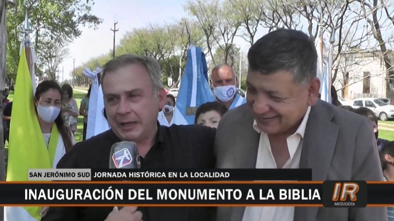Una gran ceremonia de carácter religioso tuvo lugar en horas del mediodía del pasado día domingo en la localidad de San Jerónimo Sud donde en el predio de la estación ferroviaria fue inaugurada el Monumento a la Biblia.