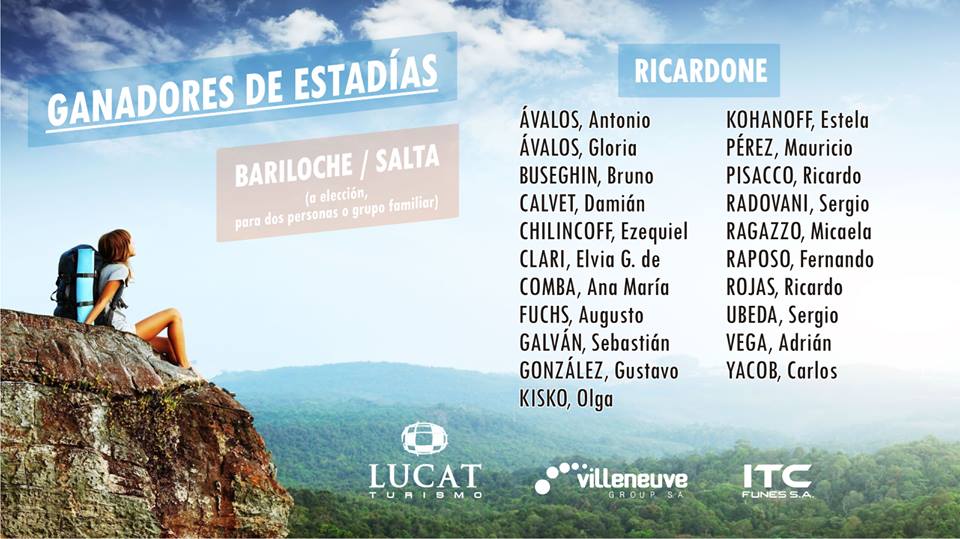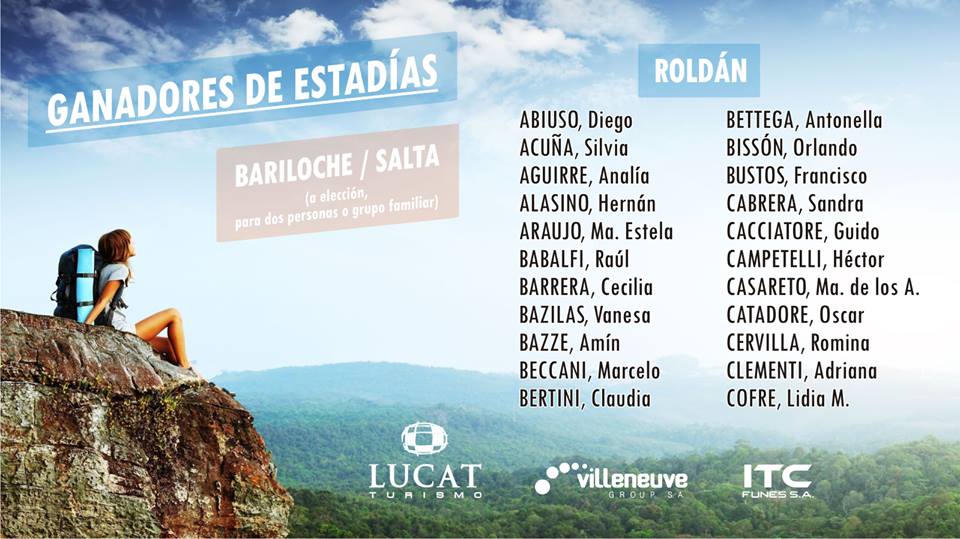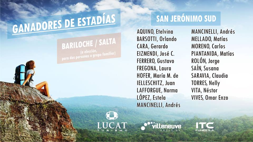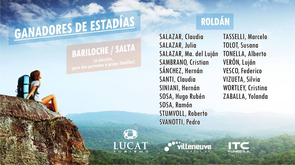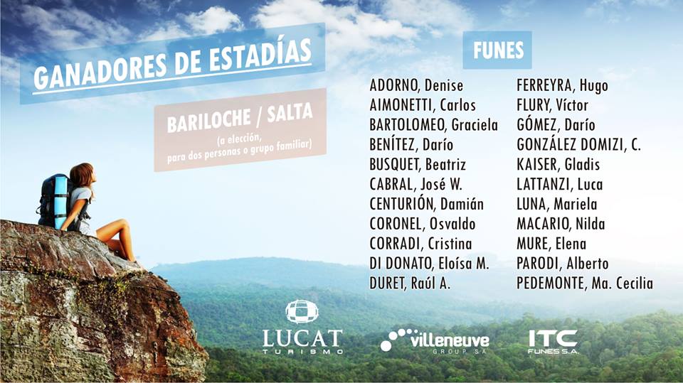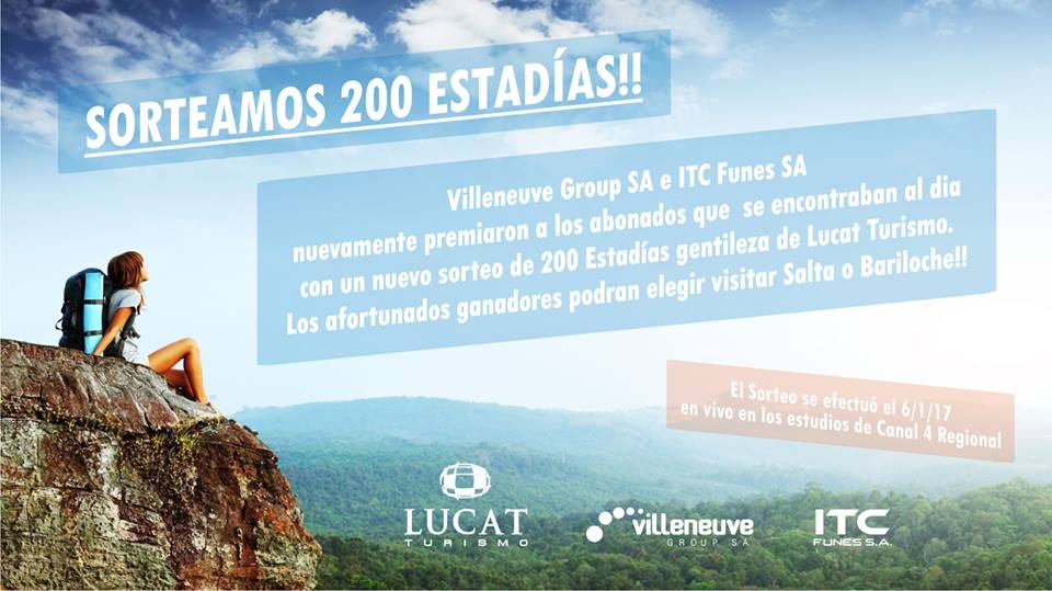 Villeneuve Group SA e ITC Funes SA llevaron adelante un nuevo sorteo premiando a sus abonados, cuyo único requisito era el contar con el abono al día. En esta oportunidad se sortearon 200 estadías gentileza de Lucat Turismo, donde los afortunados ganadores podrán elegir visitar Salta o Bariloche. Cada Estadía consta de un voucher para dos personas o para un grupo familiar, realizándose el sorteo el pasado sábado 6 de enero de 2017 en vivo en los estudios de Canal 4 Regional.