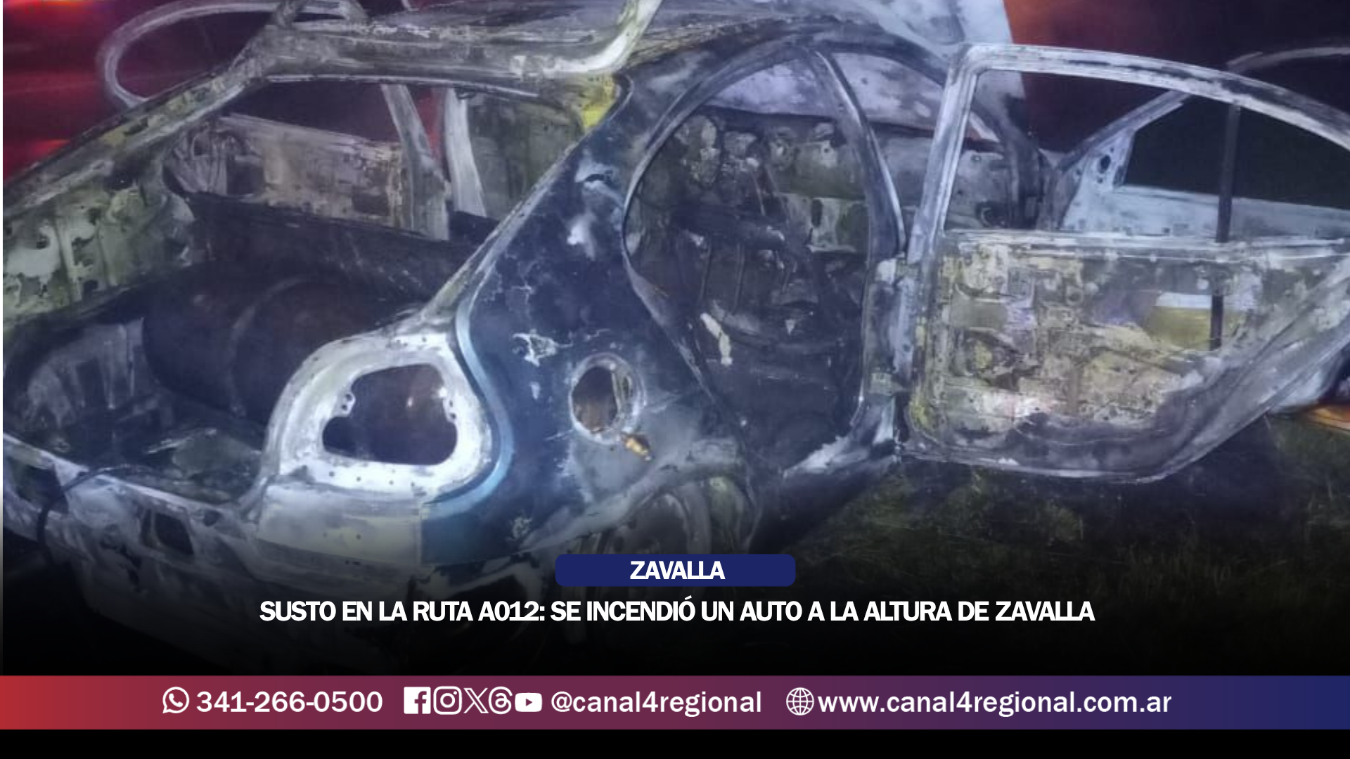 Un siniestro vial de carácter accidental movilizó a los servicios de emergencia de Zavalla durante la madrugada de este domingo 12 de abril. Alrededor de las 00:20 horas, un automóvil particular resultó con daños totales tras prenderse fuego mientras circulaba por la Ruta Nacional A012.