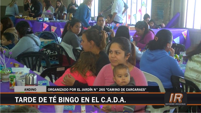 En la jornada del último sábado tuvo lugar el Té Bingo organizado por el Jardín de Infantes n° 265 “Camino de Carcaraes” de Pueblo Andino, el cual se desarrolló en las instalaciones del club Defensores y donde su salón social se vio colmado gracias a la gran concurrencia de personas que se dieron cita en la ocasión para colaborar con la entidad educativa.