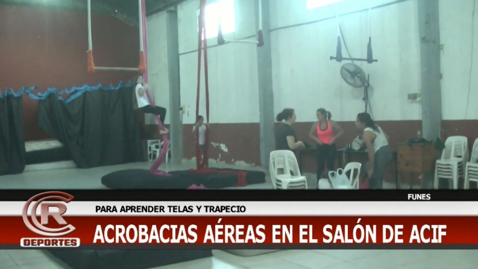 Una de las más bellas y a la vez más complejas disciplinas que entremezcla lo artístico con lo deportivo es la práctica de las Acrobacias Aéreas en Telas o simplemente Telas, que en la ciudad de Funes encuentra su lugar en el salón de la Asociación de Comerciantes e Industriales de Funes, en calle Juan Elorza 1461.