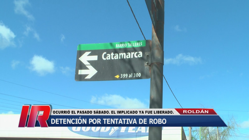 El pasado día sábado se produjo una detención en la ciudad de Roldán, cuando un individuo mayor de edad, de 22 años e identificado como Milton M., oriundo también de esta ciudad, fue sorprendido en un domicilio de calle Catamarca al 300 en donde había ingresado con fines de robo.