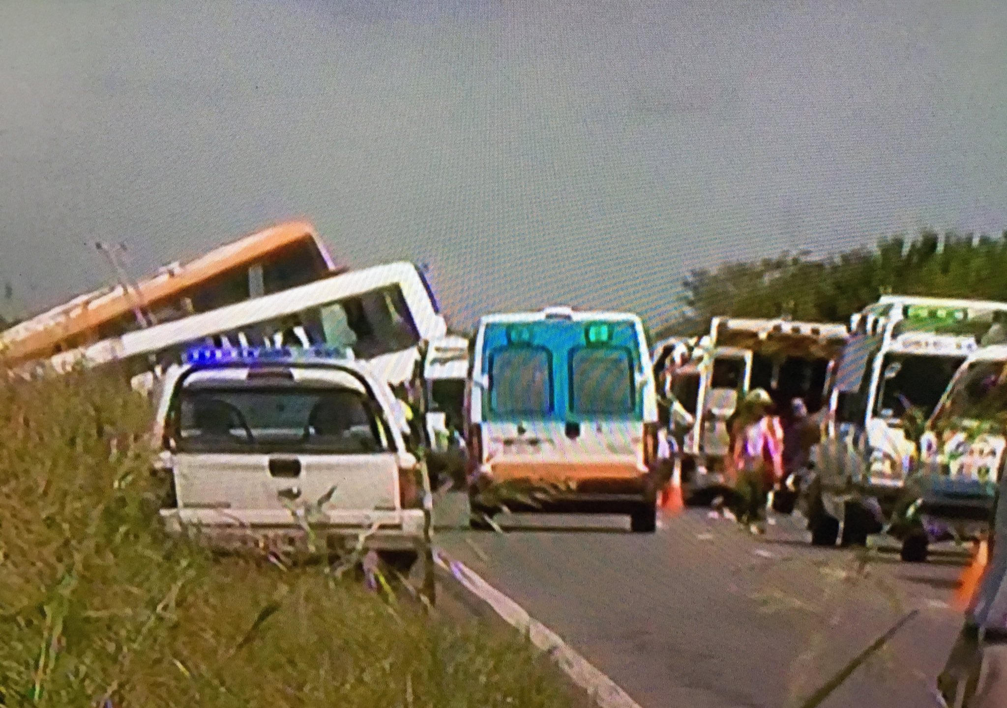 El siniestro se produjo aproximadamente a las 11:15 horas, cuando por causas que se tratan de establecer, un micro de Monticas y otro de Metropolitana (también del grupo Monticas) impactaron frontalmente. Una de las versiones indica que la colisión se produjo en un intento de sobrepaso, mientras otra fuente indicaba que podría haberse producido el reventón de un neumático.