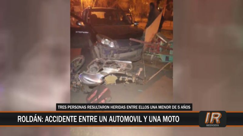 En la esquina de calles Río Paraná y Río Cuarto, en el límite entre los barrios roldanenses Santa Teresa y Las Acequias, se registró un accidente de tránsito que arrojó varios lesionados.