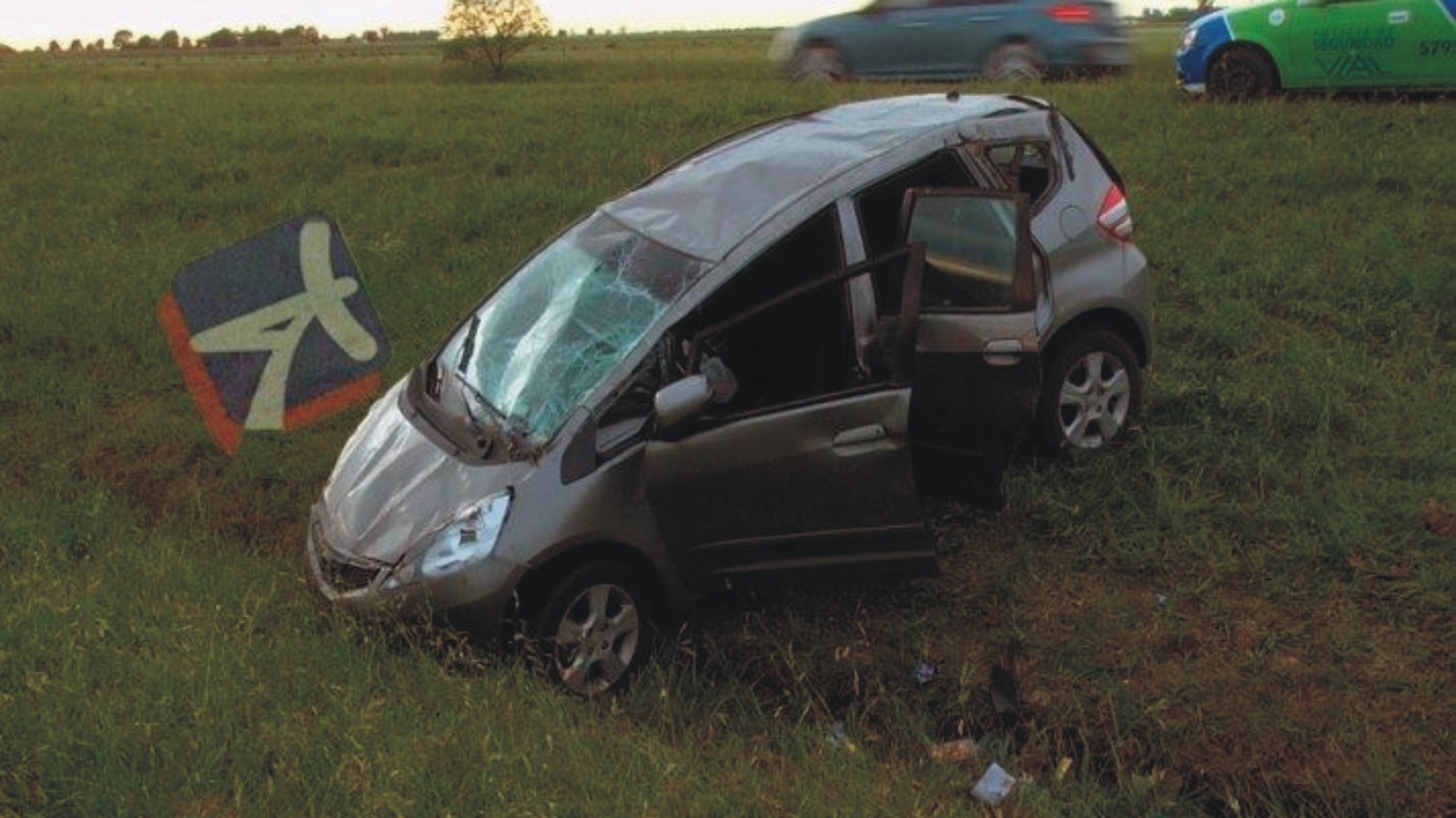 Alrededor de las 5:50 hs. de la madrugada de hoy se produjo un nuevo accidente de tránsito en la traza de la autopista Rosario – Córdoba, cuando un automóvil Honda Fit se salió de la cinta asfáltica para dar varios tumbos sobre el cantero central, en el km. 319, jurisdicción de Roldán.