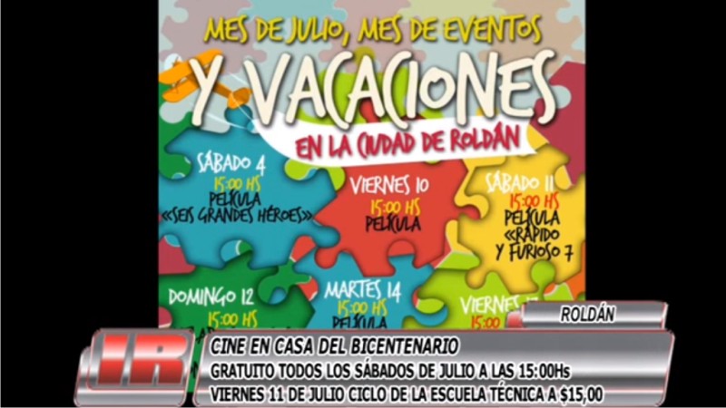 Entre tales eventos se encuentra el ciclo de cine que se estará desarrollando en la Casa del Bicentenario. El próximo viernes 11 de julio habrá funciones a las 18:30 y a las 21 horas a beneficio de la Escuela Técnica, con un valor de $ 15. En tanto, todos los sábados de julio habrá funciones gratuitas como así también los martes en diversos horarios, también en la Casa del Bicentenario. También aquí se presentará el taller de Comedia Musical Infantil.