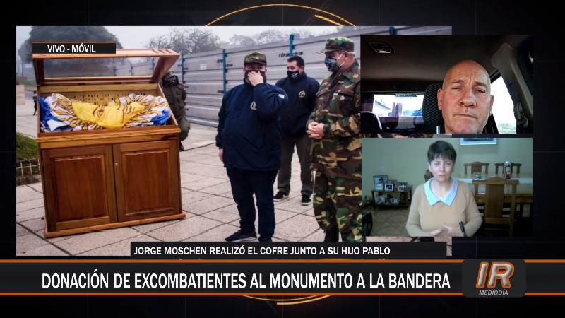 En el acto estuvieron presentes los integrantes del Centro de Ex Soldados Combatientes en Malvinas de Rosario, quienes efectuaron en nombre de todos los Veteranos de Guerra de Malvinas de todas las provincias la donación de un cofre para la preservación de la Enseña Patria que diariamente flamea en el mástil mayor del Monumento.