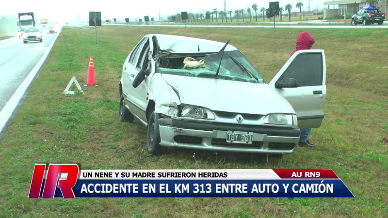 Siendo aproximadamente las 11:30 hs. se produjo el primer incidente, en el carril norte de la autopista Rosario – Córdoba, en el km. 313 a la altura del barrio Tierra de Sueños 3, cuando un automóvil Renault 19 colisionó por detrás a un transporte de carga. Como consecuencia del mismo, dos de las tres personas que ocupaban el RN 19 resultaron con heridas: una mujer mayor de edad y su hijo de aproximadamente dos años, quienes fueron trasladados en primer término al nosocomio local y luego la mamá fue derivada al Hospital Centenario de Rosario donde se comprobaron heridas leves.