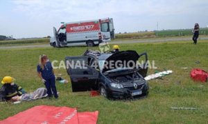 El hecho ocurrió minutos antes de las 14:30 horas cuando un automóvil Renault Sandero dominio AA831KA con dos ocupantes a bordo, un hombre y una mujer de 63 años de edad ambos y oriundos de la localidad de Villa Sarmiento, en el partido bonaerense de Morón, se salió de la cinta asfáltica por causas no establecidas culminando su raid con un vuelco en el cantero central.
