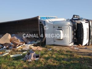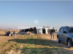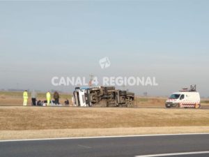En horas de la madrugada de este viernes 23 de julio, alrededor de las 4:30 horas, se produjo un nuevo siniestro vial en la Autopista Rosario – Córdoba, en proximidades del kilómetro 332, en jurisdicción de la localidad de San Jerónimo Sud, protagonizado por un camión Iveco Cursor que se desplazaba hacia el oeste y que por causas no establecidas se salió de la cinta asfáltica para culminar volcando sobre uno de sus laterales en la zona de la banquina.