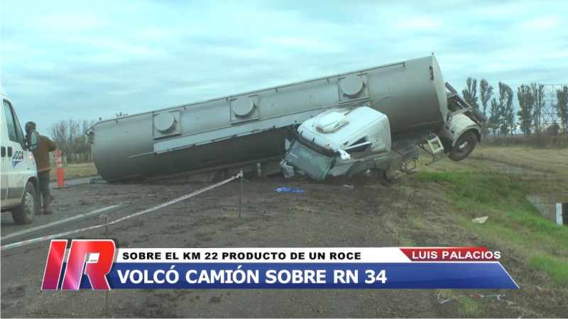 El mismo se registró cerca de la hora 1, cuando un camión cisterna que transportaba jarabe desde la localidad cordobesa de Arroyito y que se dirigía a una planta ubicada en Virrey del Pino, provincia de Buenos Aires, volcó en el kilómetro 22 de la Ruta Nacional nº 34, en jurisdicción de Luis Palacios.